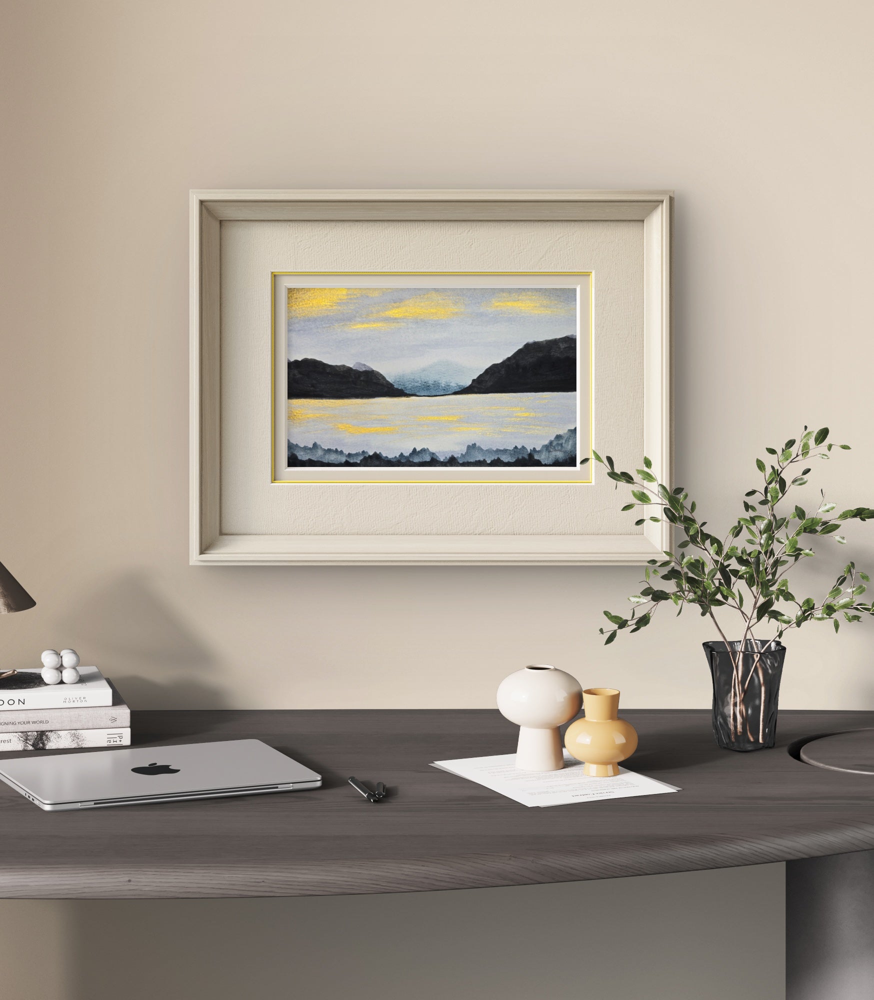 Between Dark Shores represents the space between where you’ve been and where you’re going. Dark landforms frame a luminous body of water, holding space for reflection and possibility.